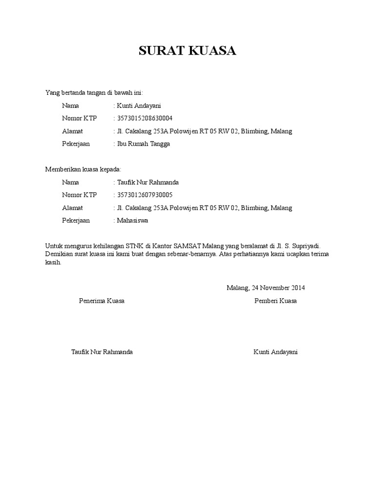 Contoh Surat Kuasa Pengurusan Kehilangan Stnk Contoh Surat