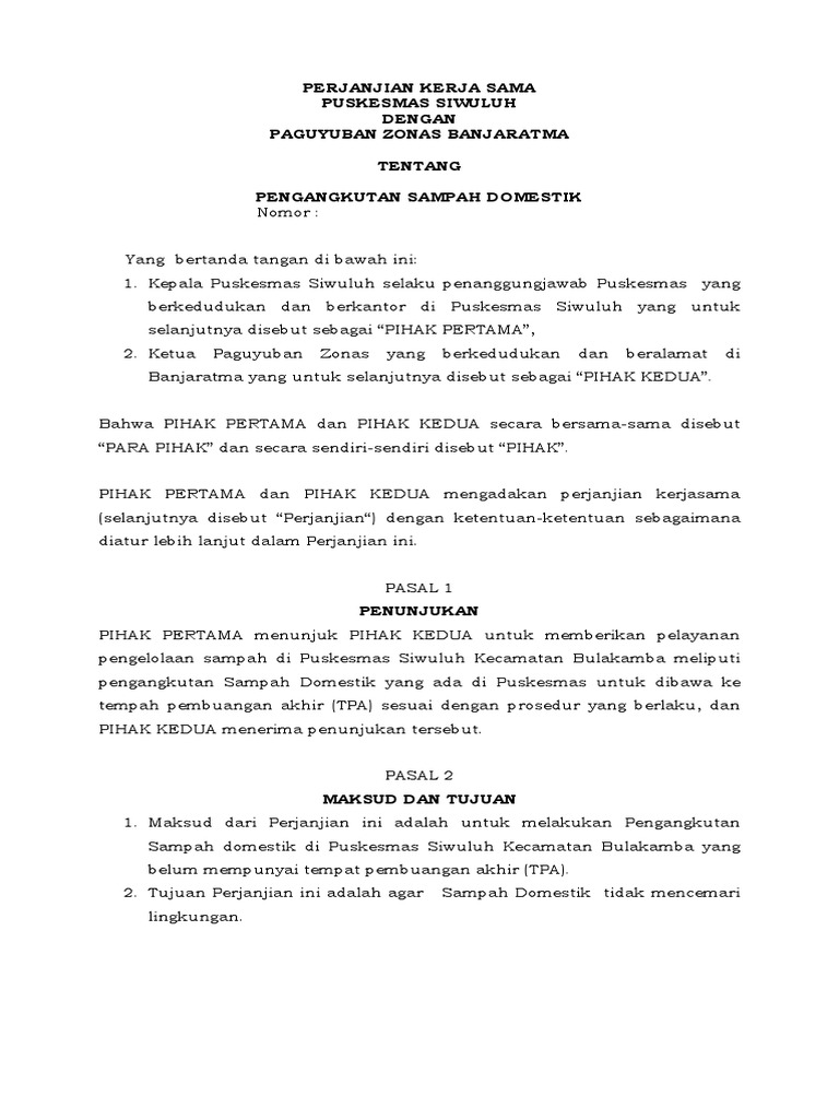 Inilah Informasi Surat Perjanjian Kerjasama Pengambilan Sampah, Mou pengangkutan sampah 10 contoh surat penawaran kerjasama surat gagasan jaringan komputer contoh surat permohonan kerjasama antar anisasi di 2021 surat fisika proposal doc perjanjian kerjasama baru ilham nur academia edu contoh surat perjanjian kerjasama jasa kebersihan nusagates contoh surat perjanjian kerjasama pengelolaan sampah bagi contoh surat mou sampah non medis pkm contoh surat perjanjian kerjasama pengelolaan sampah bagi contoh surat, terima kasih.